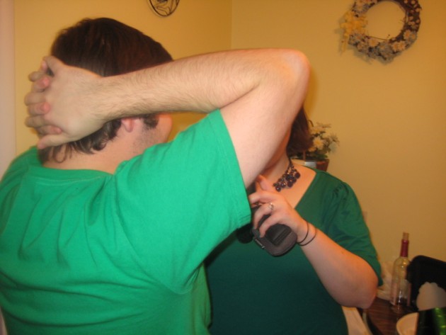 Alex giving Jen-E the party boy