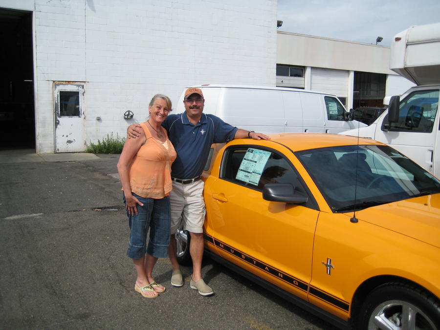 Frank & Donna picking up Grabber Orange Mustang at Sayville Ford (Aug. 2008)