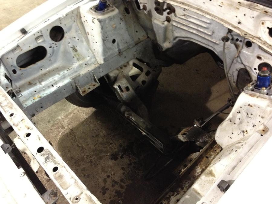 Old engine bay after wires and before paint
