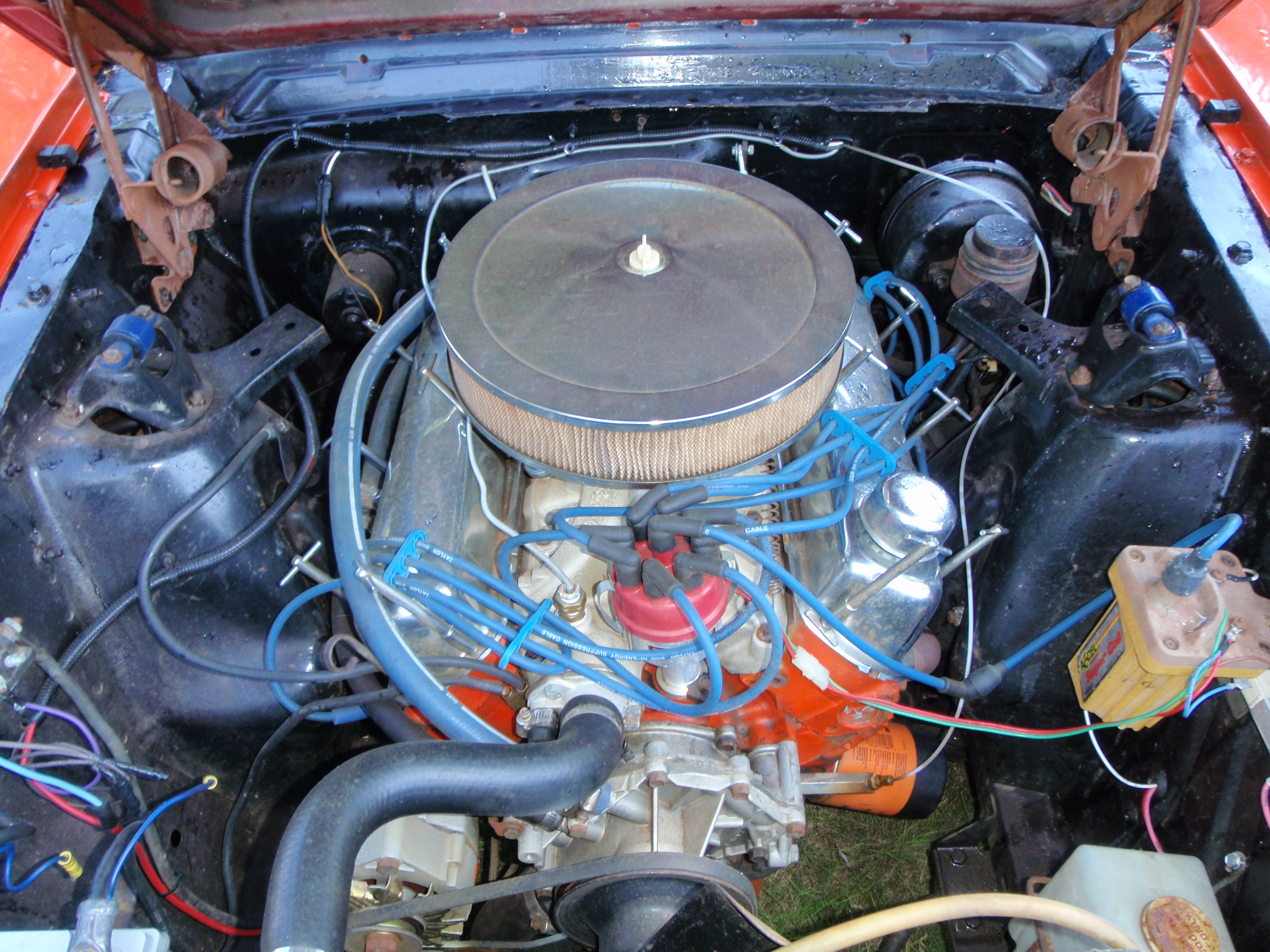 I have had this car for about a year and completed a V-6 - V-8 conversion the previous owner started. It has a new drivetrain with less than 4k miles on the 289 from another Mustang donor, C4 Tranny and rebuilt nine bolt with 3.73 gears. The brakes, front suspension, new American Autowire kit were also redone and installed. The metal is pretty solid with the usual Mustang cancer spots, the floor, frame rails and behind the battery. (In the additional parts listed I have included new metal from CJ for both frame rails with all the needed trunk pieces and behind the battery) This has plenty of new additional parts already installed, B&M shifter, lenses, lights and cage which the previous owner installed. The majority of the interior is all there, the back seats are in fantastic condition with the fronts needing to be recovered.